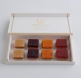 フルーツの鮮やかな酸味と香りを活かしたパートドフリュイをベースにナッツのコクを凝縮した自家製ジャンドゥーヤを2層に重ね、裏面にカカオニブを散りばめることで、味わいと食感のコントラストが際立つ構成になっています。